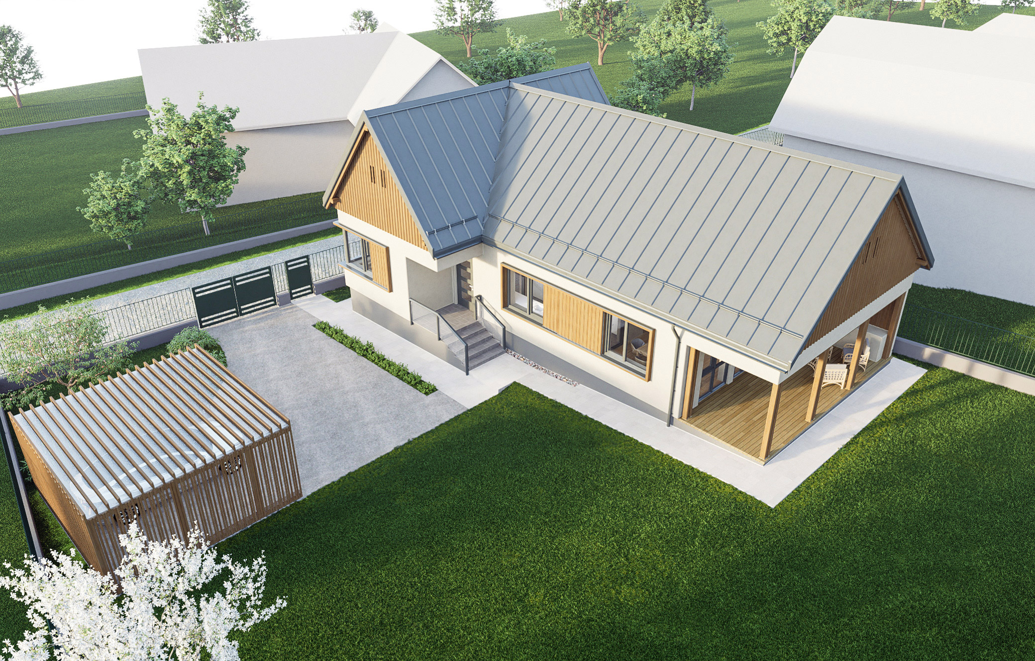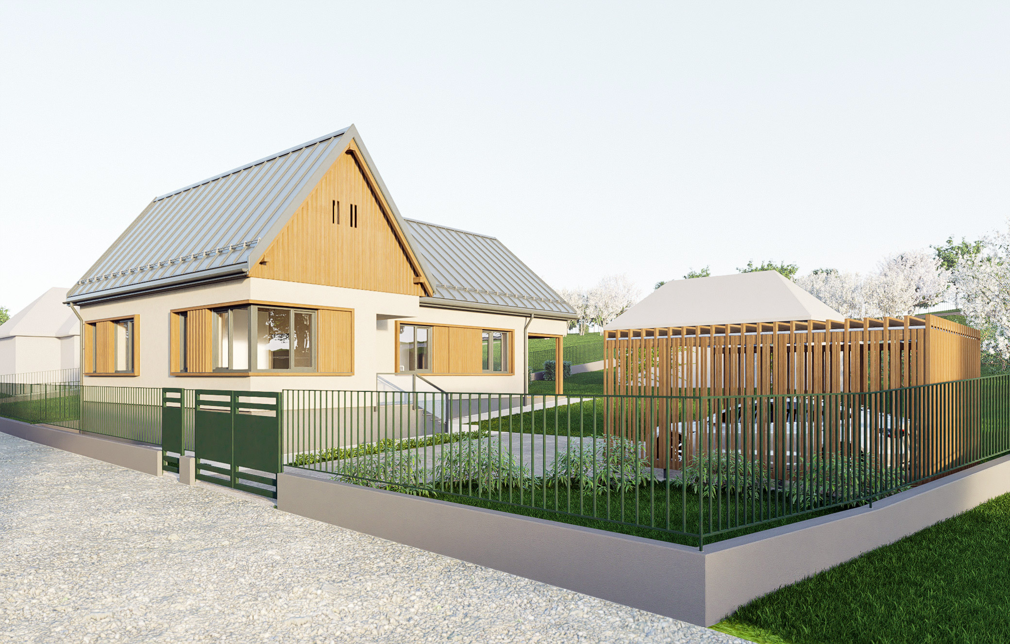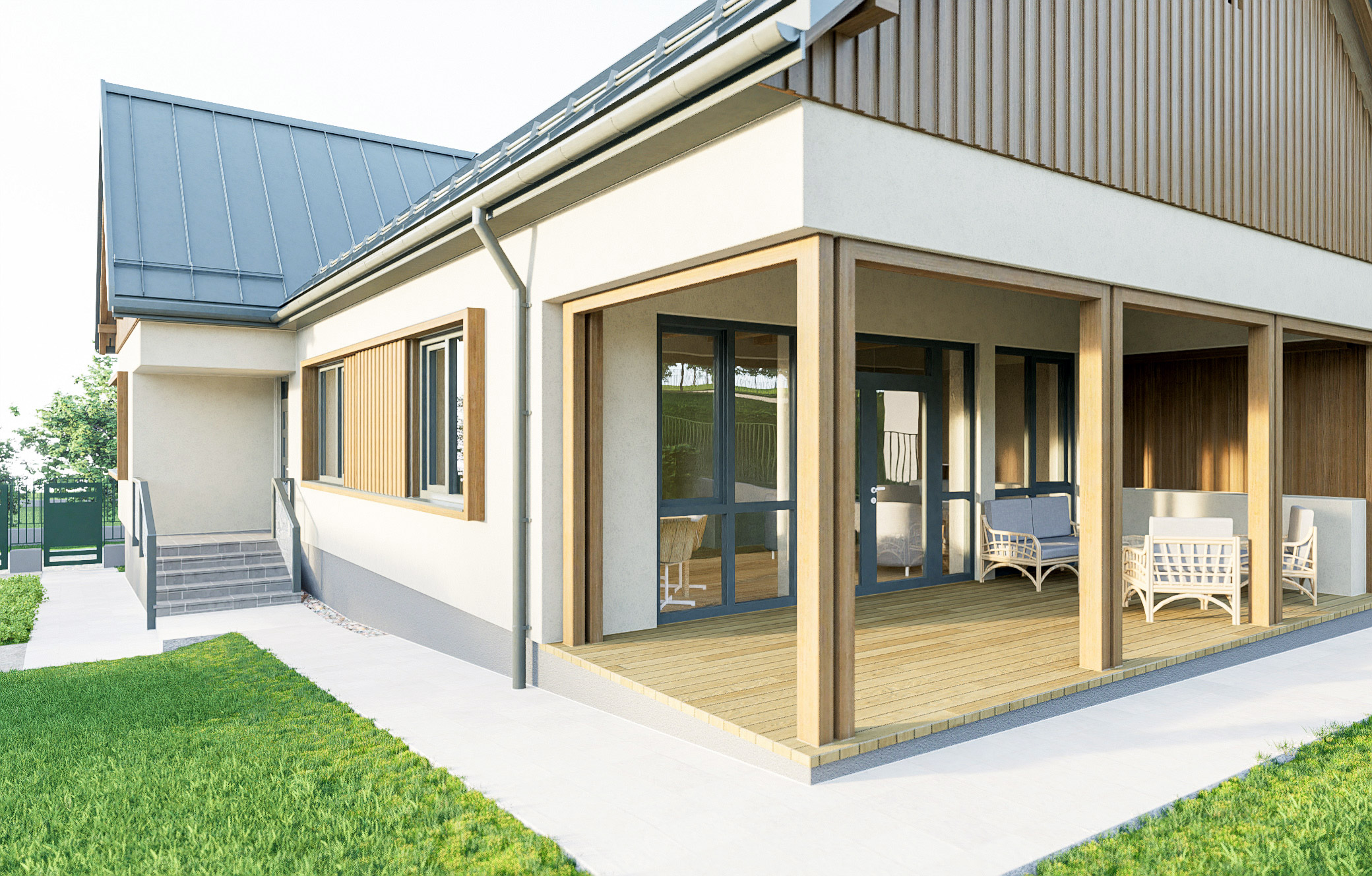 Proiectul a vizat extinderea și reconfigurarea unei case existente din satul Tureni, județul Cluj. Clădirea existentă este o casă parter, făcută după un proiect tip, în perioada comunista, fiind formata din doua camere de locuit, plus câteva dependințe. Clienții au dorit modernizarea și reconfigurarea spațiului existent, plus extinderea în plan cu o zona de living și o terasă acoperită. Casa parter a fost reconfigurată astfel încât spațiile proiectate să beneficieze de o relație cât mai bună cu spațiul exterior al curții și punctele cardinale. Imaginea exterioară a clădirii reia aspectul specific al caselor rurale din Transilvania, folosind materiale, tehnici de construcție și detalii moderne, astfel încât să ofere tot confortul necesar modern.